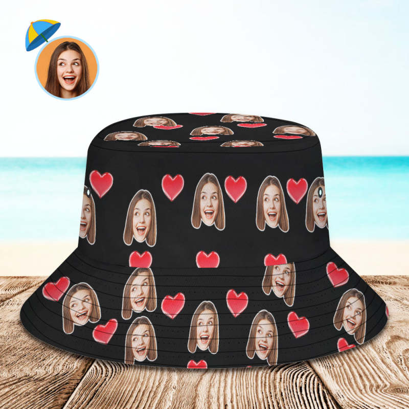 カスタムバケットハット-写真入れ可能なサマーキャップハイキングビーチスポーツハット-黒いハート