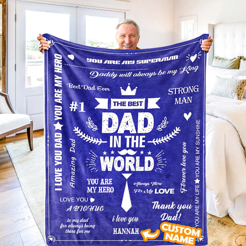 父の日ギフトカスタム名前ブランケット-世界で最高のお父さんへの名前入れ可能なオリジナル毛布