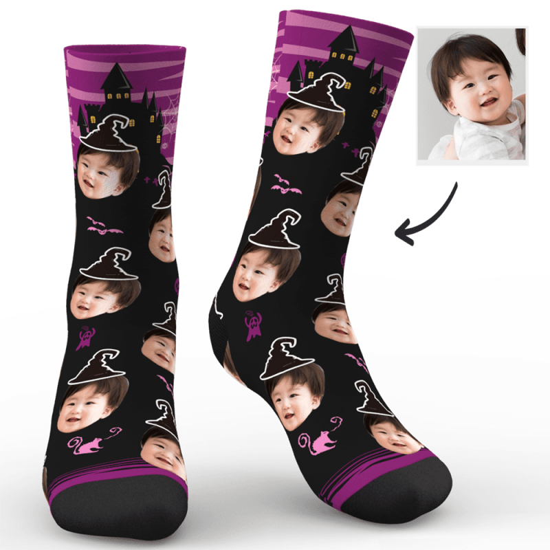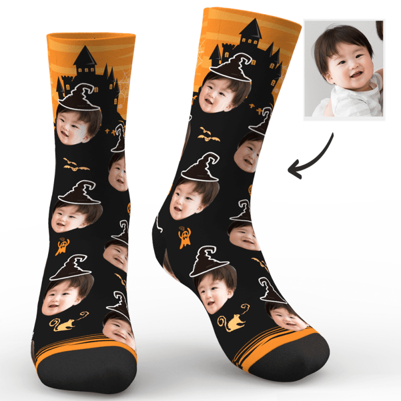 カスタムフォトソックス-写真入り名入れ可能なオリジナル靴下-ハロウィンゴースト絵文字
