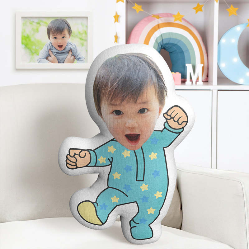 かわいい赤ちゃんミニム枕カスタムフェイスクッション写真入れ可能なミニム抱き枕青いベビー服の赤ちゃん
