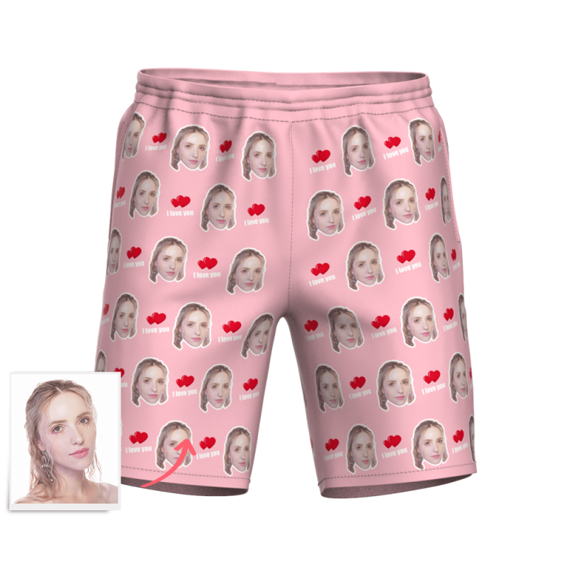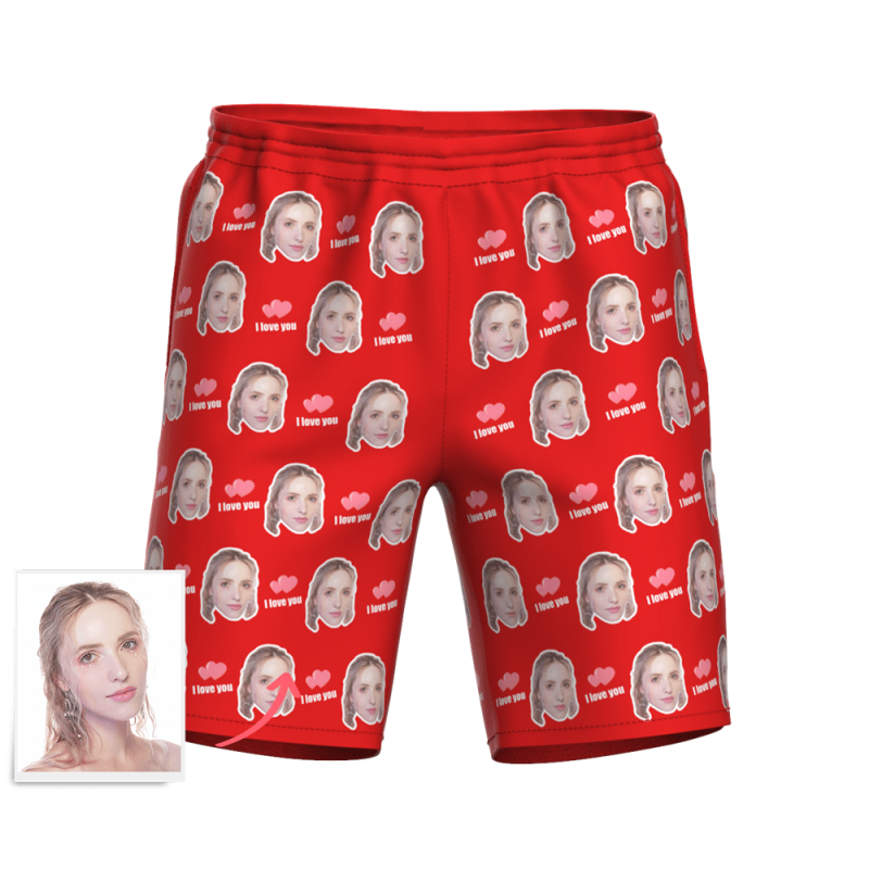 メンズカスタムフォトサーフパンツ-写真入り可能なオリジナル水着最高の贈り物メンズ水着フォトマッシュ愛してる